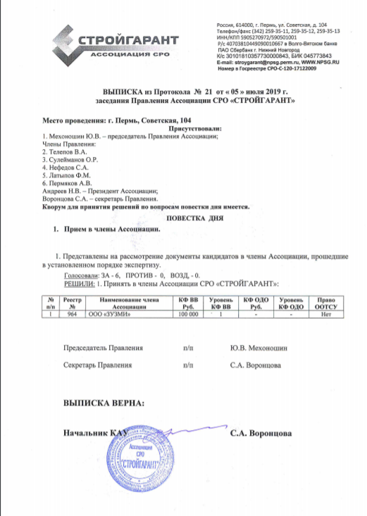 Допуск строительное СРО для ООО "ЗУЗМИ-Нефтекамск"